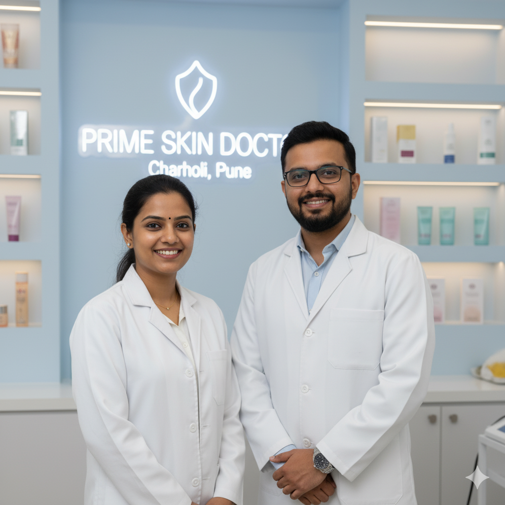 Prime Skin Doctor is a trusted Skin, Hair & Laser Clinic located at Charholi Phata, Alandi Road, Pune. Founded by Dr. Rahul Sanap (MBBS, DDV – Skin & VD) and Dr. Archana Sanap, our clinic offers expert care in dermatology, cosmetology, trichology, and aesthetic treatments. We are dedicated to providing safe, effective, and personalized solutions for every skin and hair concern.